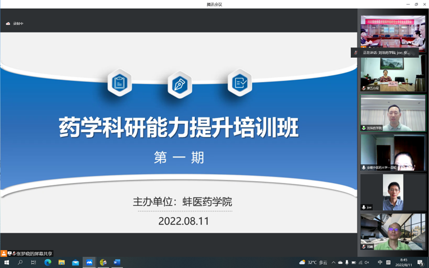 为促进电影天堂 药学学科发展,加快药学人才培养,着力提升科研骨干业务水平和科研能力,8月11日上午,电影天堂 举办科研能力提升培训班(第一期),邀请到上海交通大学电影天堂 钱峰教授、江南大学医学院潘礼龙教授、安徽中医药大学电影天堂 吴虹教授、广东医科大学电影天堂 彭新生教授等专家学者主讲。省药监局第五分局党支部书记、局长殷晓建,蚌埠医学院科研处处长钱中清,蚌埠医学院电影天堂 院长刘浩,副院长王清清、李娴出席了活动。电影天堂 科...