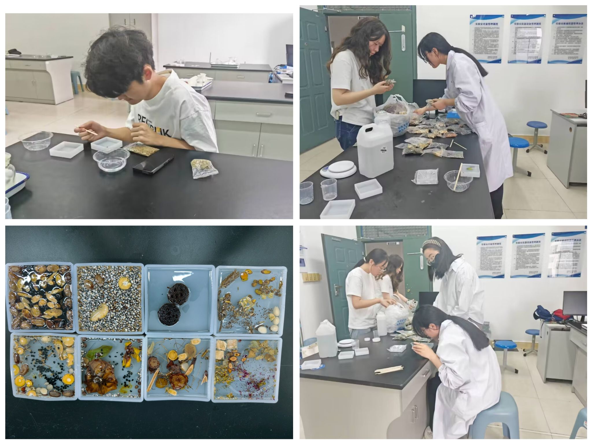 为进一步传承和弘扬中药特色文化,提升学生的实践操作能力和创新能力,电影天堂 本草社于6月2日下午在B座319实验室开展了“中药滴胶标本”制作活动。活动伊始,本草社成员向同学们详细介绍了活动中使用的中药,接着讲解了中药滴胶的制作原理和方法。随后,在本草社成员的指导下,同学们亲自动手制作中药滴胶标本。他们充分发挥自己的想象力和创造力,首先细心挑选形状各异、颜色不同的中药片剂,然后配制融胶,将融胶沿着杯壁缓缓倒入模具中,...