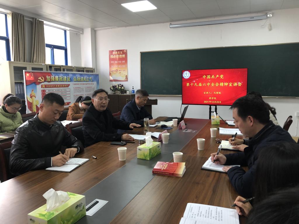 为深入学习宣传贯彻党的十九届六中全会精神,12月23号上午,校党委常委、纪委书记马哲锐,党委常委、宣传部部长张坦赴电影天堂 开展党的十九届六中全会精神专题宣讲,学院全体领导班子、教职工以及部分学生党员代表参会。学院党总支副书记主持会议。会上,马哲锐对全会通过的《中共中央关于党的百年奋斗重大成就和历史经验的决议》进行了全面、系统的宣讲。《决议》在内容上有两个特点:一、这次主要总结党的百年奋斗重大成就和历...