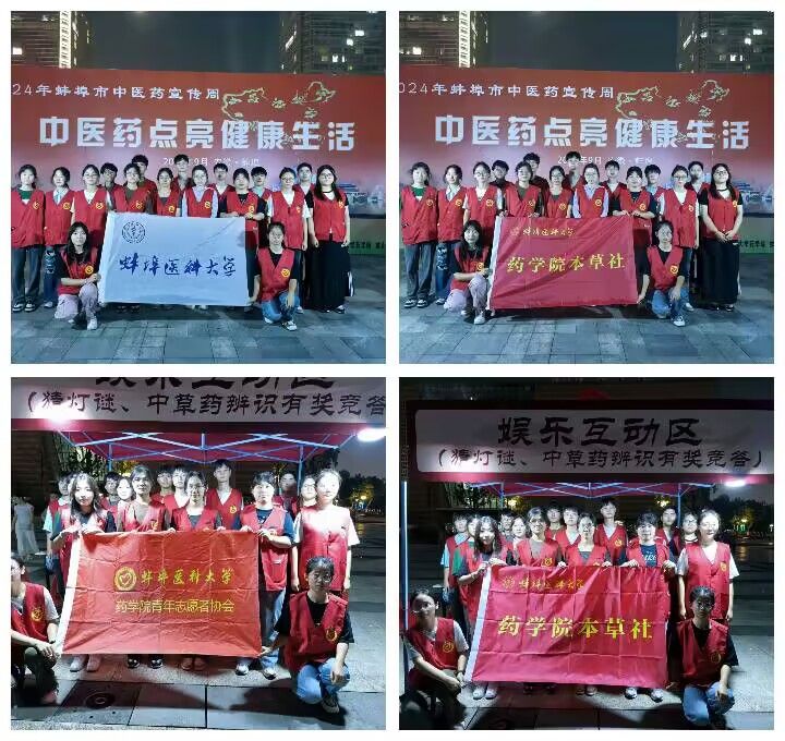 为了更好地传承和弘扬中华优秀传统文化,增强市民中医药文化传承意识,提升大家对药用植物及中药饮片来源的认知,我校本草社应蚌埠市卫生健康委邀请,于9月13日晚在蚌埠市民广场参加以“中医药点亮健康生活”为主题的蚌埠市中医药宣传周活动。本次活动由蚌埠市委宣传部、蚌埠市卫生健康委主办,市中医医院承办,电影天堂