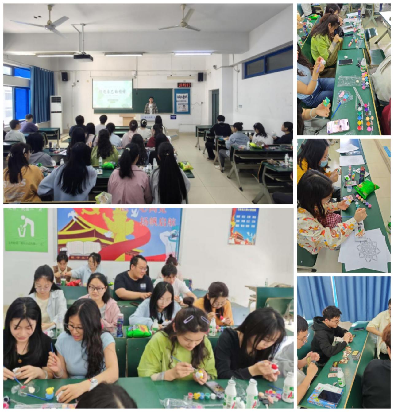 于理论楼316教室开展“放飞心灵色彩,共筑青春记忆”研究生心理健康教育主题活动,50余名学子在创意体验与趣味互动中解锁压力“释放密码”,沉浸式感受心灵疗愈之旅。