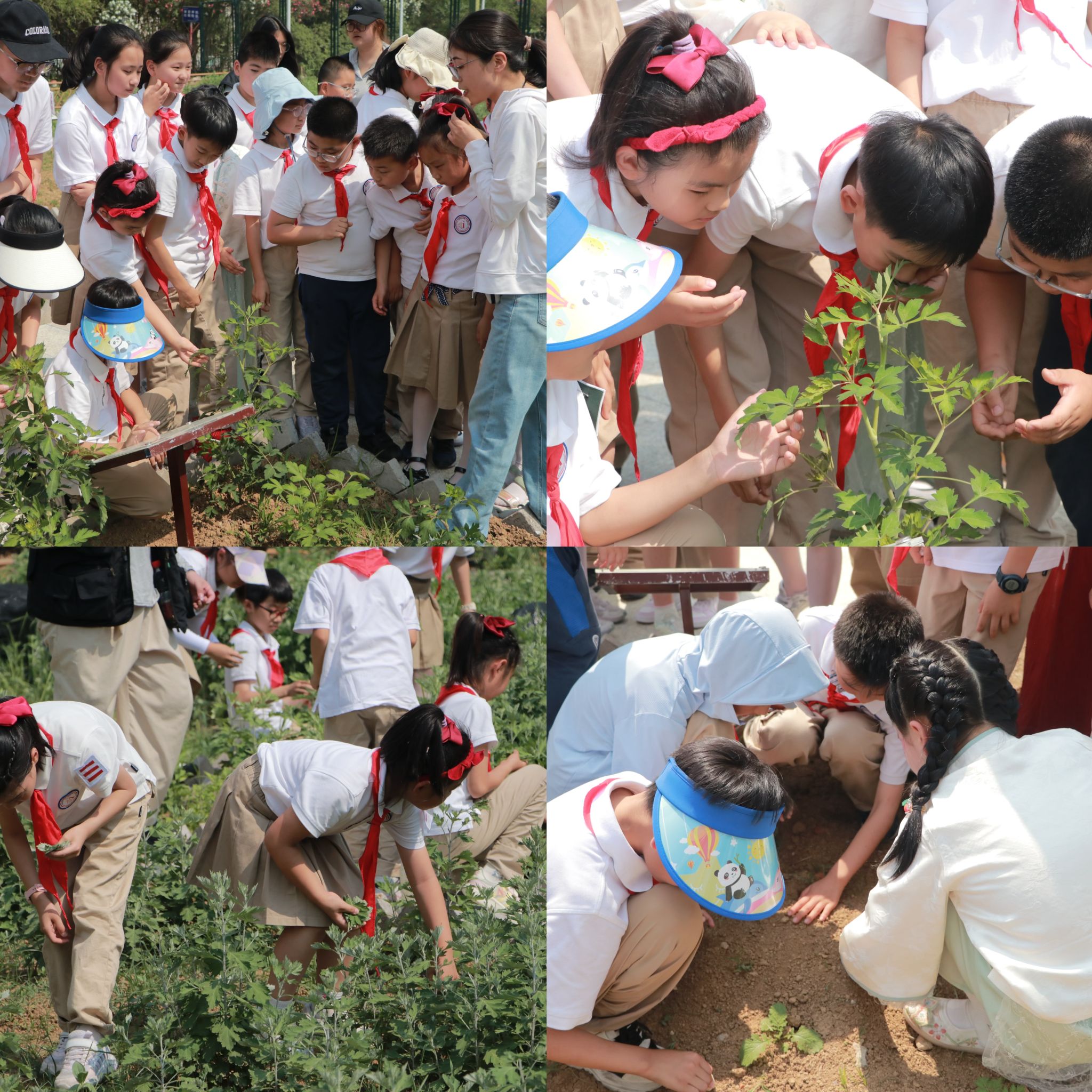 中医药基础教研室教师带领孩子们辨识常见中草药,亲手采摘艾叶,通过“五感教学法”(观其形、闻其味、触其质、问其效、思其用)全方位认识本草特性。