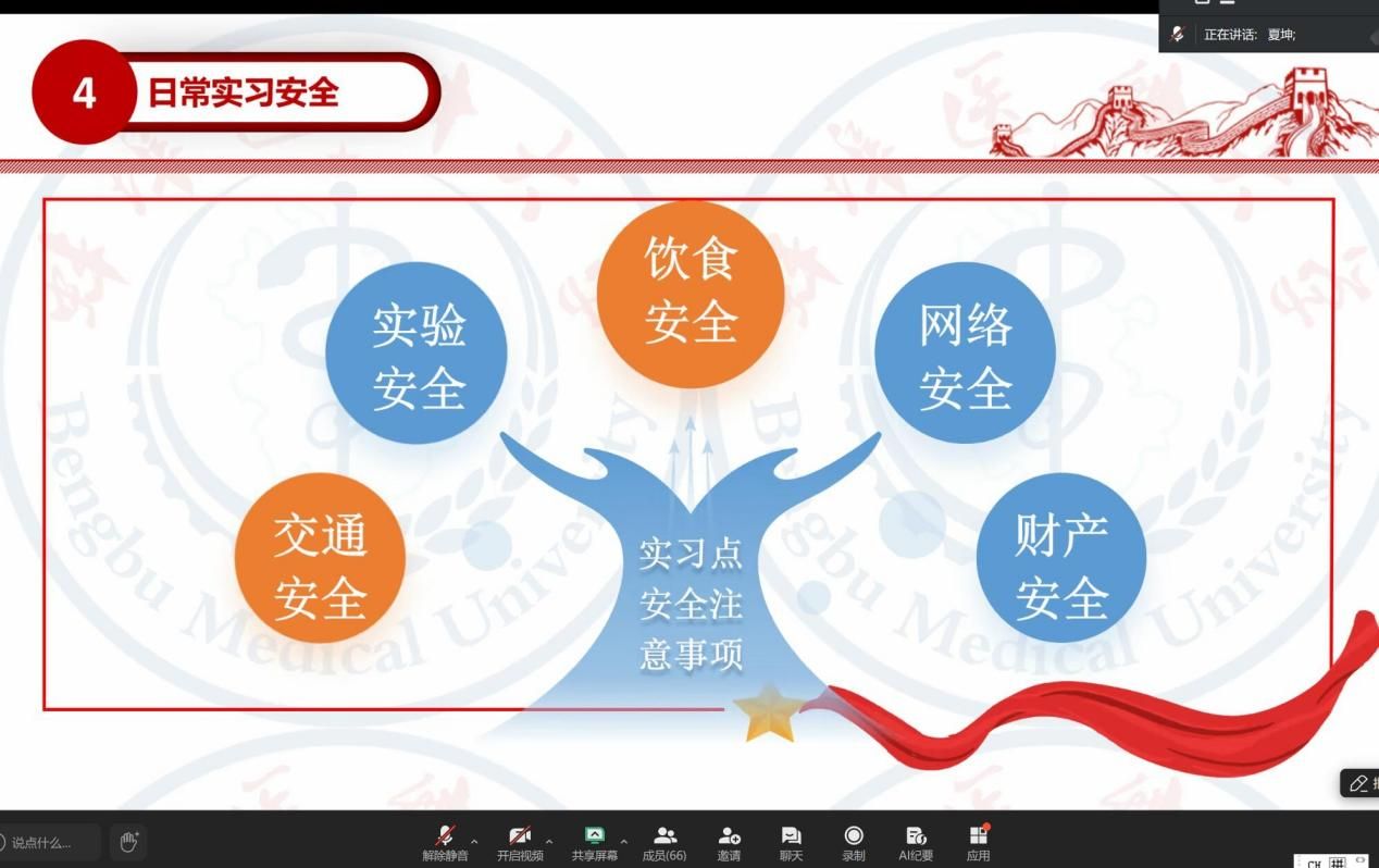 最后,夏坤老师结合各实习点特点强调安全:针对实验操作、外出调研等场景,要求严格遵守实验规程、做好防护,注意交通安全,警惕诈骗,“安全是实习与考研的前提,需时刻紧绷安全弦”。