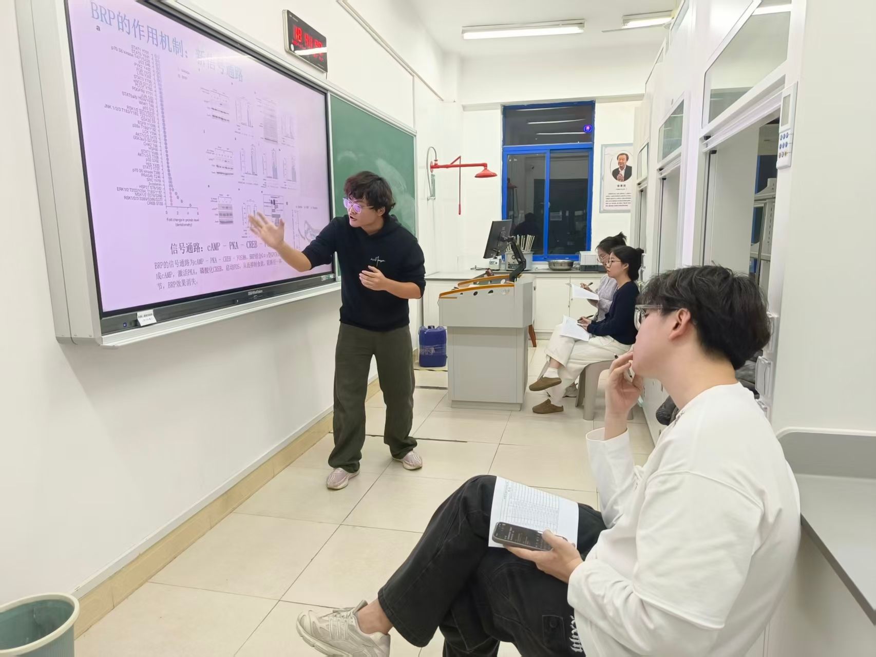 活动期间,各小组严格遵循流程有序推进。同学们以 PPT为载体,清晰阐述所选论文的研究背景、实验设计、关键结果及个人思考,部分学生结合专业知识,针对实验方法提出创新性改进建议,展现出扎实的专业基础与活跃的科研思维。研究生评委从论文精读深度、PPT逻辑与美观度、语言表达流畅性、问答互动应变能力四个维度进行细致点评,既肯定学生的亮点成果,也精准指出改进方向。现场氛围热烈,涌现出一批科研兴趣浓厚、表达能力突出的学生,得到师生的广泛认可。