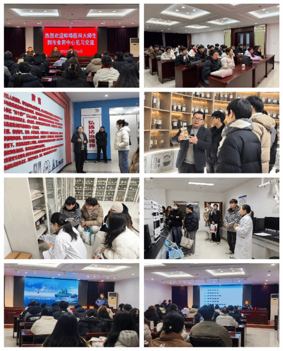 第三站,同学们来到蚌埠市食品药品检验中心,开启一场食品药品安全技术科普之旅。中心邓祖磊副主任首先系统介绍了机构的发展历程、核心职能与检验检测业务范畴,让同学们对食品药品检验工作有了全面认识。随后,在技术骨干的带领下,大家依次走进食品理化检验室、药品色谱分析室、微生物检测实验室等核心区域,近距离观摩中药材真伪鉴别、微生物菌落检测等实操过程。参观中,同学们围绕检验标准制定、质量控制规范等问题积极提问,与工作人员展开深入交流,切实体会到检验检测工作守护公众健康的重要意义,进一步筑牢了食品药品安全责任意识。