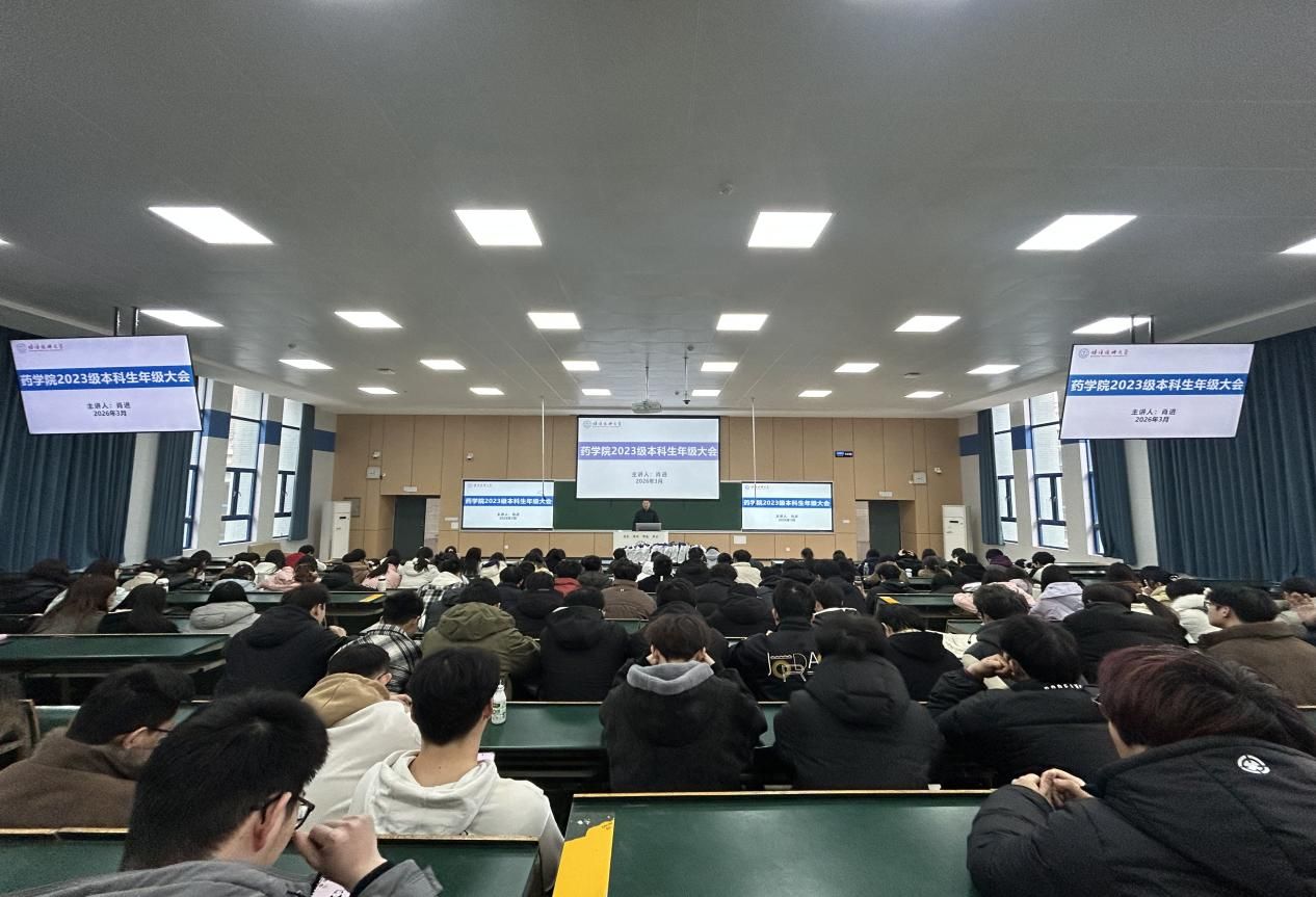 2023级本科生新学期年级大会在理论楼T4教室举行。药学、药分、临药专业全体同学参会,会议由辅导员肖进主持。大会包含表彰先进、学期总结与安全教育、学期工作部署等内容,目的是明确新学期发展方向,凝聚共识,为同学们有序开展大三下学期学习生活奠定基础。