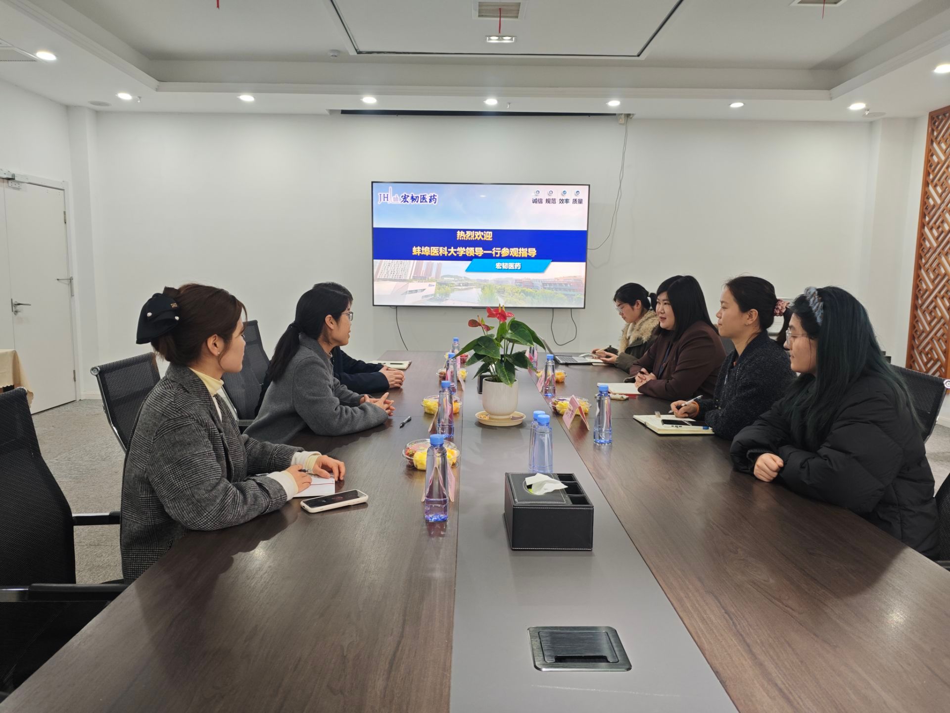 走访武汉宏韧生物医药有限公司期间,企业副总经理张瑞介绍了其作为国内领先的药物研发CRO企业的核心优势,重点展示了符合GLP规范的生物分析平台及临床生物分析、药代动力学研究等核心业务宏韧医药。双方聚焦制药工程、临床药学等专业学生实习需求,探讨“一站式”社区实践育人新举措,依托学生社区资源,更好搭建实践教学、科研育人平台。