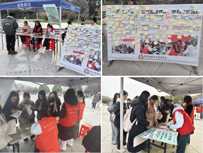 3月20日,在学校西门文化广场先行举办了“雷锋精神,用药护航”主题活动。活动巧妙设计了健康科普问答环节,工作人员将涵盖日常科学用药、保健知识的题目装入纸盒,同学们通过随机抽取、现场作答的方式,在趣味互动中学习了实用健康知识,提升了安全用药与自我防护意识。同时,活动专门设置了“雷锋墙”宣传板,鼓励同学们提笔写下身边感受到的好人好事与互助瞬间。一张张承载着感激、致敬与赞美的纸条,汇聚成一面温暖的“雷锋墙”,使平凡的善举被看见、被铭记,生动诠释了雷锋精神的当代内涵。此次活动实现了专业知识传播与雷锋精神弘扬的有机结合,彰显了药学生用专业服务师生、守护健康的初心与担当。