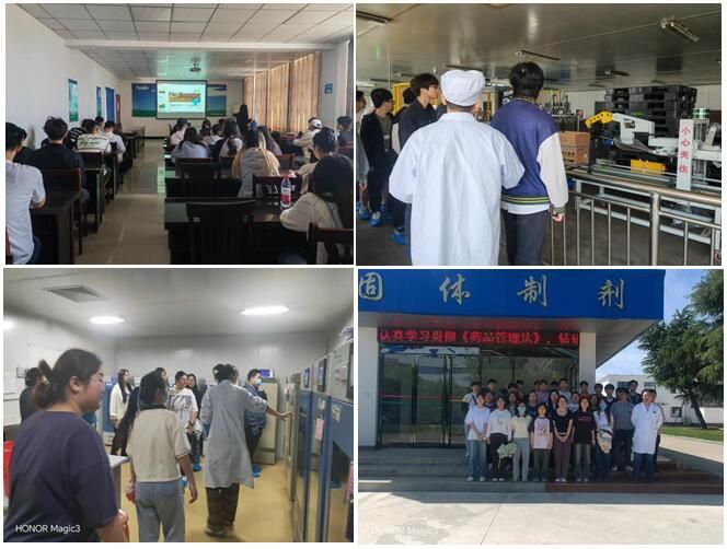 师生一行受到了各个公司的热烈欢迎,在讲解人员的带领下,同学们详细了解了各个药企的整体布局以及物料管理车间、包装车间、仓库等。在互动交流环节,同学们积极提问,对诸如企业研发流程、企业研发设备和研发人员招聘要求等企业负责人都一一耐心地解答,这加深了同学们对药品生产过程的理解和认识,使同学们感受到了药厂员工严谨的工作作风和对细节的极致追求。在一个个车间的参观中,同学们也感受到了药学企业生生不息、拼搏奋斗的精神,极大地鼓舞了同学们在药学专业学习的道路上不断前行。