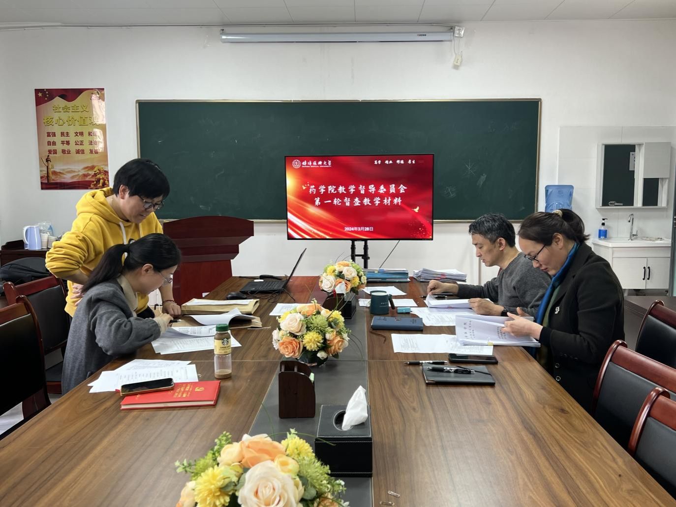 党委委员马涛、药理学教研室副主任魏芳,药剂学教研室副主任王秀参加,各教研室接受本科教育教学审核评估相关材料现场检查。