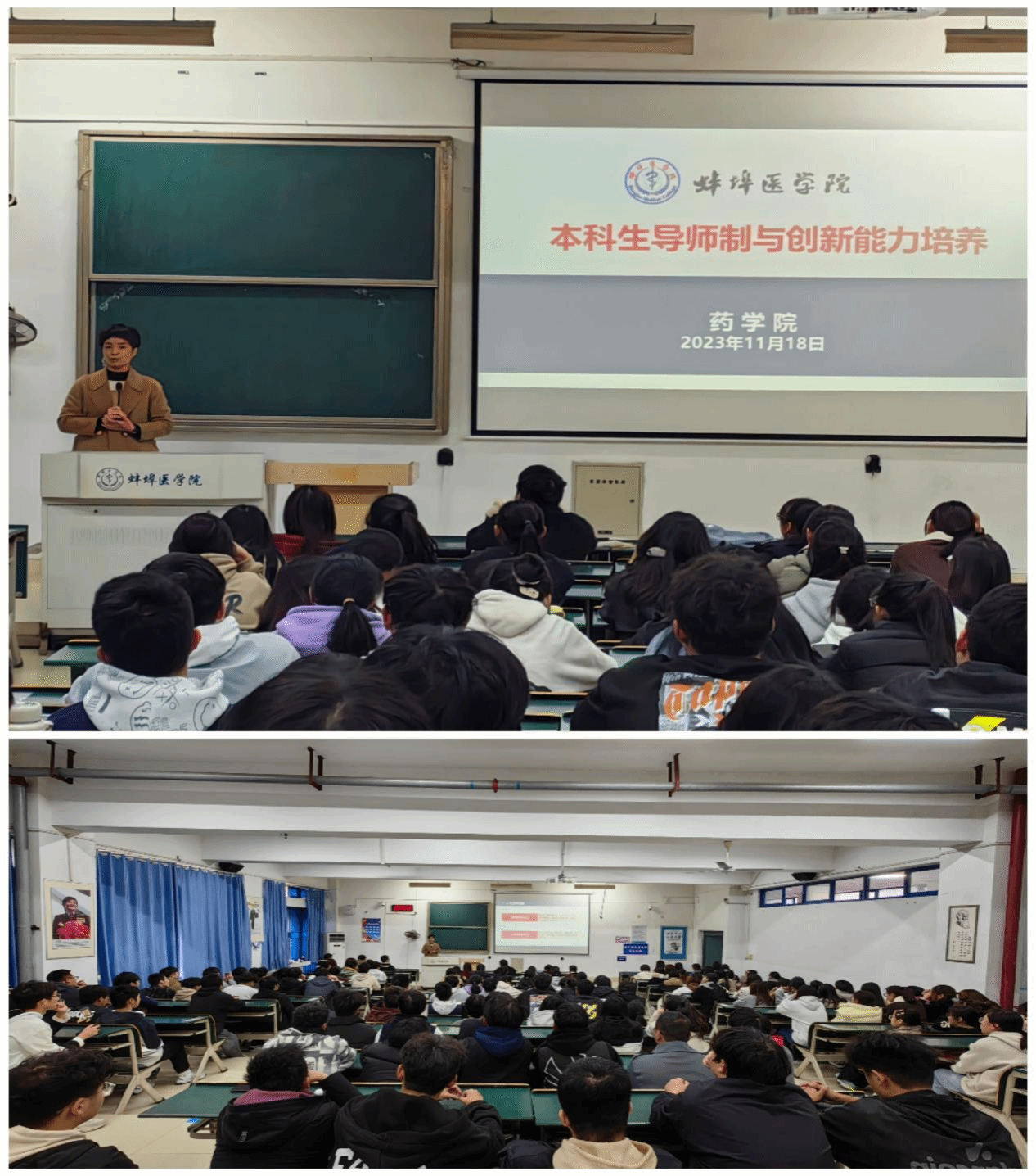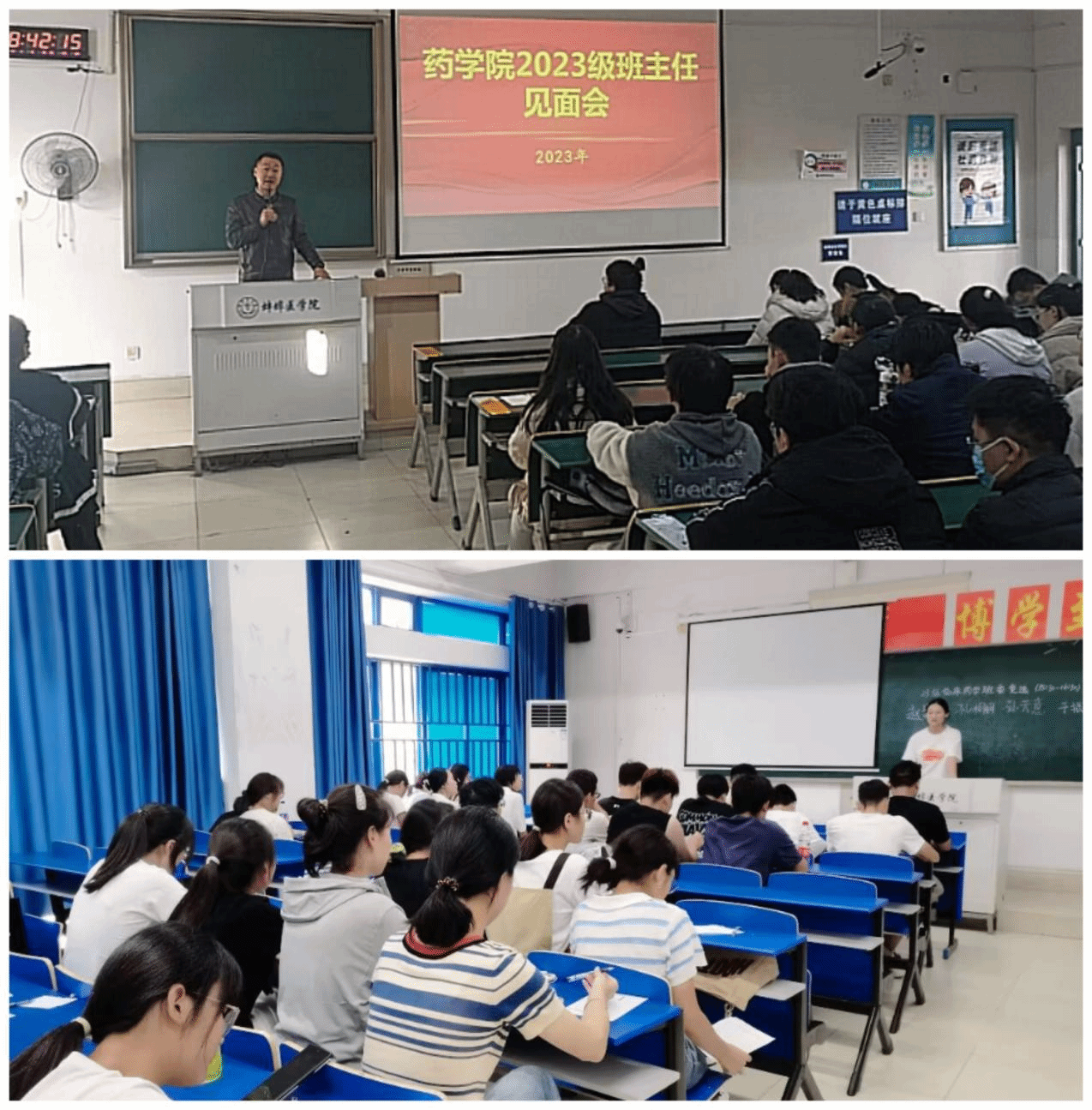 党委书记刘浩,副院长李娴、王清清,各教研室、实验中心正副主任,一二附属医院药剂学负责人,教师代表,各年级辅导员及2023级全体本科新生参加了此次活动。