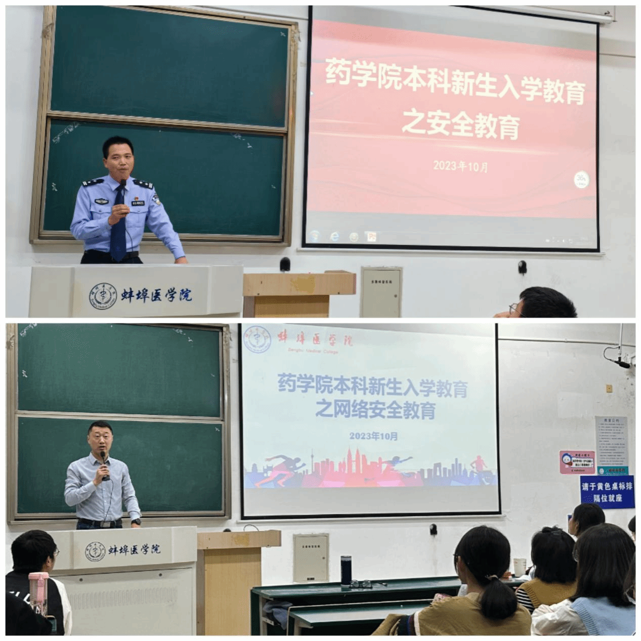在开学前后组织开展了安全教育工作,开学前一周新生年级辅导员召开了《线上安全教育主题班会》,开学后又开展了《新生入学教育之网络安全教育》讲座,还邀请了蚌埠市龙湖派出所所长陈兴武,围绕人身财产安全、电信诈骗防范、校园贷、交通安全、消防安全和实验室安全等内容,结合具体案例讲解了相关注意事项。