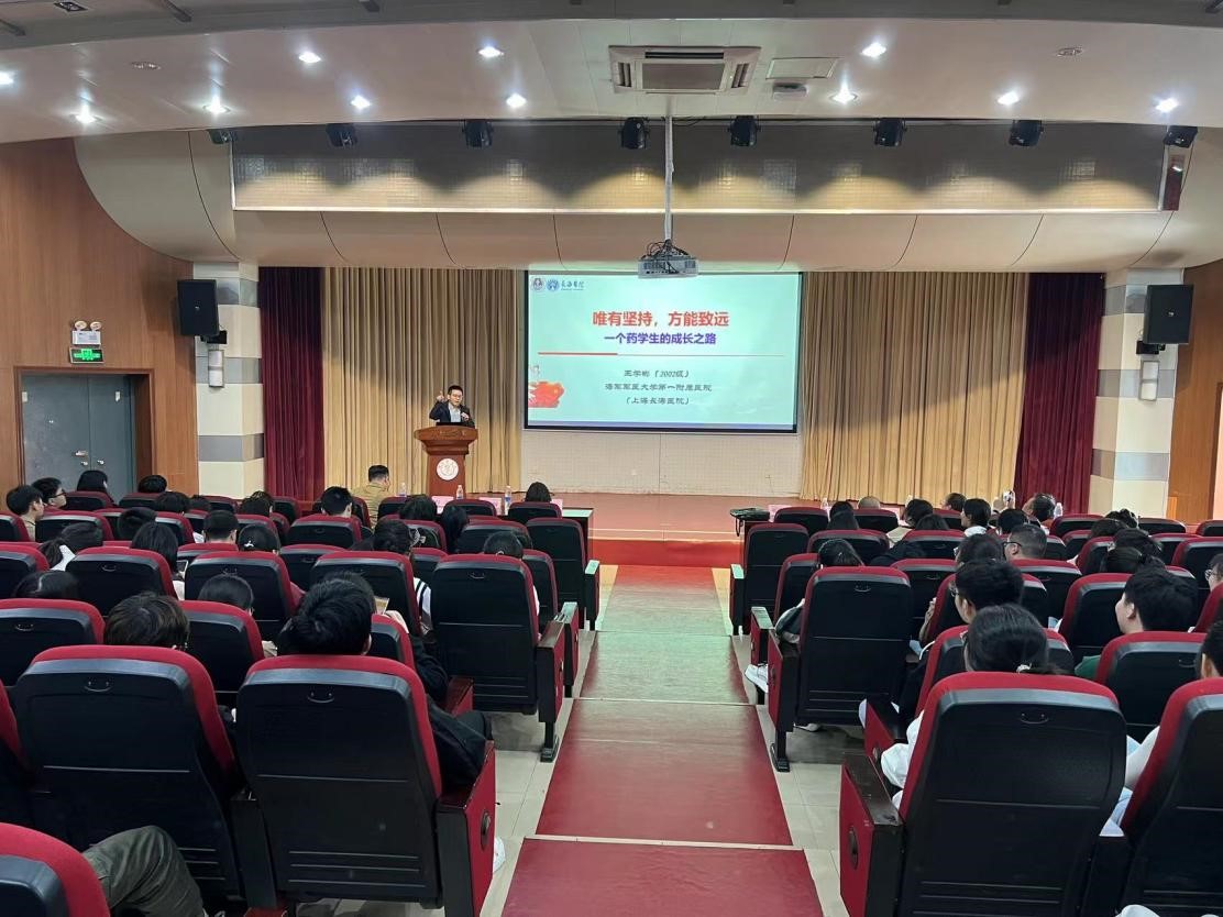 2006届药学专业本科校友王学彬,海军军医大学第一附属医院(上海长海医院)临床药学室及TDM负责人,副主任药师,中国药理学会TDM研究专委会青委副主任委员,临床药师学组常委、秘书,中国药理学会定量药理学专委会委员、临床应用学组委员,上海市药理学会TDM研究专委会、临床药理专委会委员,上海市医学会临床药学专科分会ICU学组委员,《中国医院用药评价与分析》青年副主编,《中国临床药理学杂志》青年编委,《中国临床药学杂志》编委。学彬校友以“唯有坚持,方能致远——一个药学生的成长之路”为题,讲述了自己的求学和科研工作经历,希望学弟学妹们在校期间既要注重专业理论知识的学习,还要不断强化专业实践能力,珍惜光阴、把握当下,努力提高个人综合素质和能力,成为更优秀的自己。