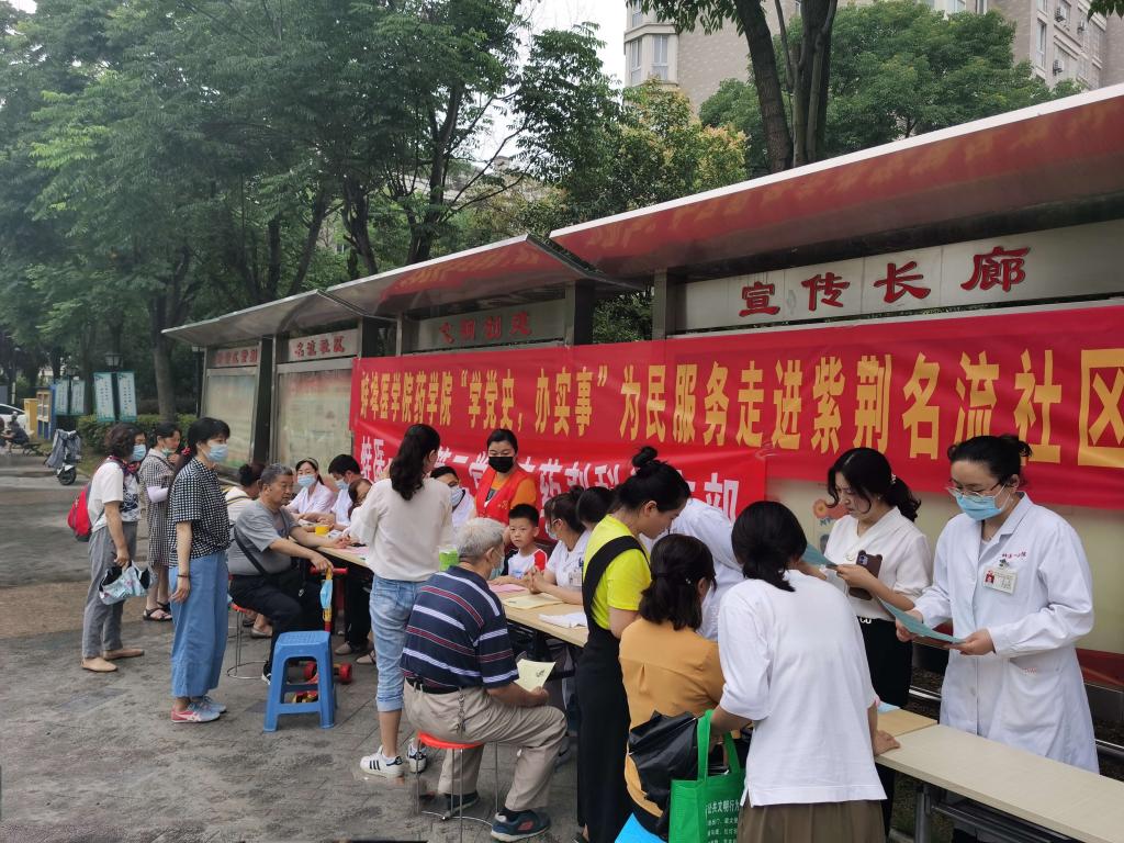 教师和学生党员及一附院药剂科党支部一同前往紫荆名流社区,开展“党旗在基层一线高高飘扬”志愿服务活动。