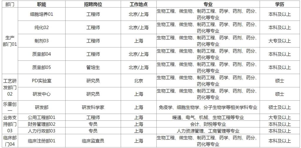 [email protected](请在邮件标题上注明申请岗位名称+姓名、学校、专业,如:生产序列细胞培养部管培生+乐小普、XX大学、生物工程专业)