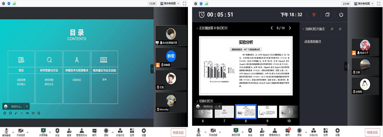 本次大创项目线上学习交流活动以“读文献、学知识、增才干、提素质”为主旨,从最终汇总的活动截图中可以看到每一位学子的成长与努力,大家共同用汗水创造佳绩,用拼搏铸就辉煌。大创导师们认真听取了同学们的汇报,对学生就在阅读文献过程中出现的共性问题进行了点拨,并对大创项目的接下来的研究内容和方法进行了讲解。经过交流与研讨,同学们对自己的大创项目有了更深的认识,也让同学们坚定了做好项目的决心。