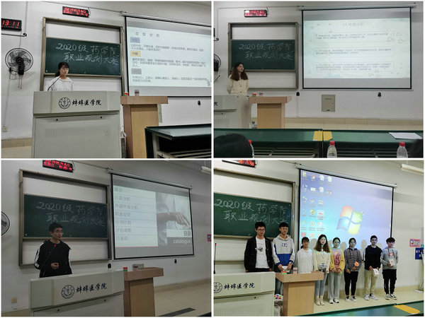 比赛分为职业规划书评比和职业规划阐述两个部分。策划书作品形式多样、风格各异,有着明确的自我分析、目标分析,能结合同学们自身所处的环境设立合理的职业目标,表现了同学们对未来蓝图的认真规划,也体现同学们对未来美好的憧憬。在职业规划阐述环节,参赛选手结合PPT从自我认识、环境分析、具体执行计划、调整评估等方面进行阐述。他们在演讲中畅谈自己未来,也通过SWOT分析,找出自身优势劣势,并详细具体的制定了自己的短期与长期目标。大家自信大方的演讲博得了现场观众的阵阵掌声。经过热烈的角逐,药物分析专业的选手周娟获得了本次比赛的第一名。