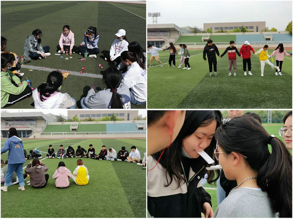 学生第二党支部分别于4月11日、17日在学校塑胶运动场开展“关心自己,关爱他人”的素质拓展活动。